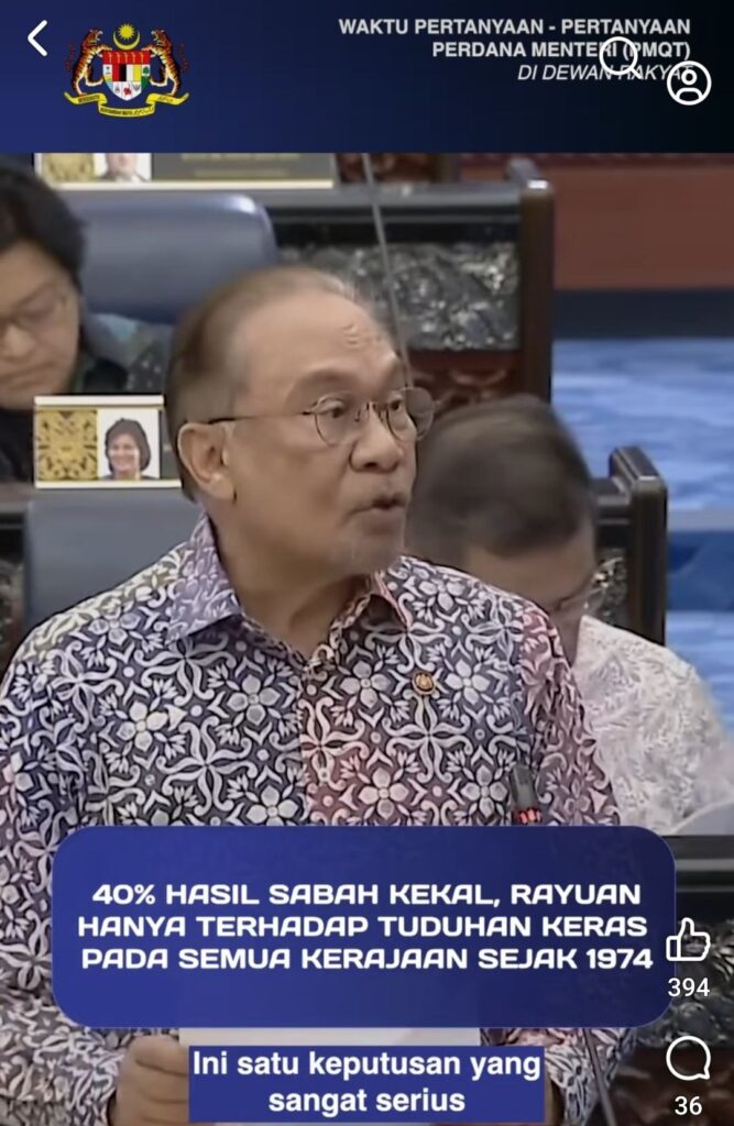 In response to a question in the Dewan Rakyat this morning, Anwar stated that the decision was made following a Special Cabinet Meeting on November 11, where a full briefing from the Attorney General and the National Treasury was considered. He explained that the appeal filed by the Federal Government is solely focused on the serious allegations in the court’s Grounds of Judgment, which claim that all Federal Governments from the era of Tun Abdul Razak to the present, as well as all Sabah State Governments from the administration of Tun Datu Mustapha to now, have breached constitutional duties and neglected responsibilities to Sabah.