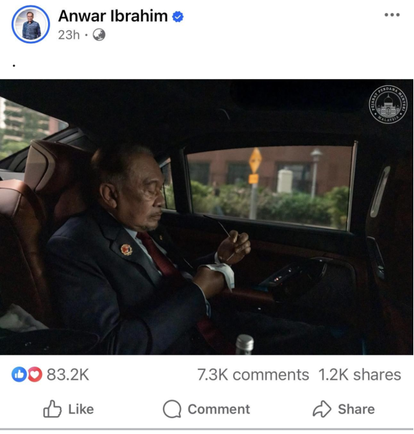 Malaysia’s Prime Minister Anwar Ibrahim posts a solitary “.” with this image on Facebook after the ASEAN Summit. (Photo: Anwar’ FB)