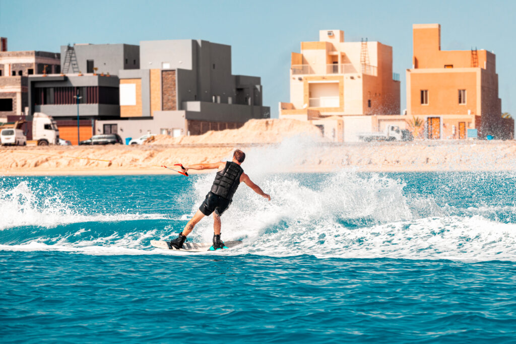 Go all out by chartering a yacht to feel the wind whip through your hair as you sail past hidden coves and coral-ringed islands, or embrace the thrill of dinghy sailing, mastering the art of harnessing the Saudi Red Sea’s playful breezes. For adrenaline-seekers, the coastline offers futuristic adventures like E-foiling, where you’ll glide above the waves on a hydro board as if you’re skimming over the horizon itself. Paddleboarding enthusiasts can enjoy an invigorating ride on crystal-clear waters, while kayakers can explore tranquil bays and mangrove-lined shores. Further south in the Centre region, Yam Beach beckons. Try your hand at kite surfing — for those looking to perfect their skills, book onto private lessons or group sessions.