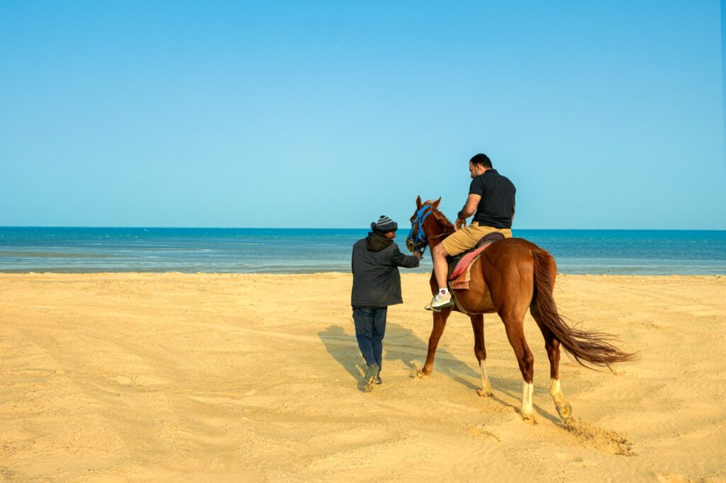 At an equestrian centre tucked away near the shoreline, seasoned trainers introduce you to the legendary Arabian horse. Known for their unmatched stamina and elegance, these creatures embody centuries of tradition and pride. After a hands-on lesson guided by experts – where you’ll learn all about different breeds and their quirks – it’s time to take to the beach. Here, you’ll trot along the sand, the turquoise sea lapping close by, as the golden hour casts a honeyed glow over the horizon. Once the ride ends, sink into a traditional beachside majlis for a hearty local meal and board games — or simply swapping stories as the waves serenade you in the background.