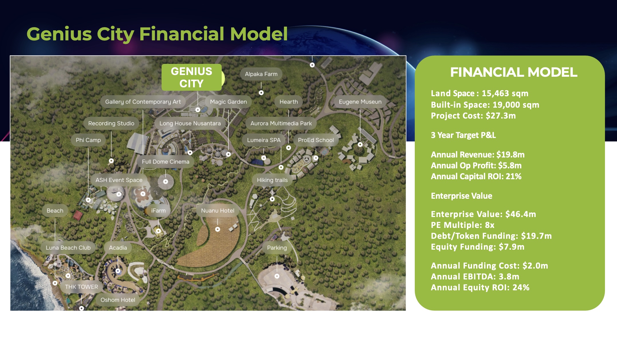 The updated Financial Model is an increase on the projections announced by the Company on November 10, 2025, when it first announced the completed agreements with Nuanu Creative City for the development of Genius School and Genius City at a valuation of $14 million.
