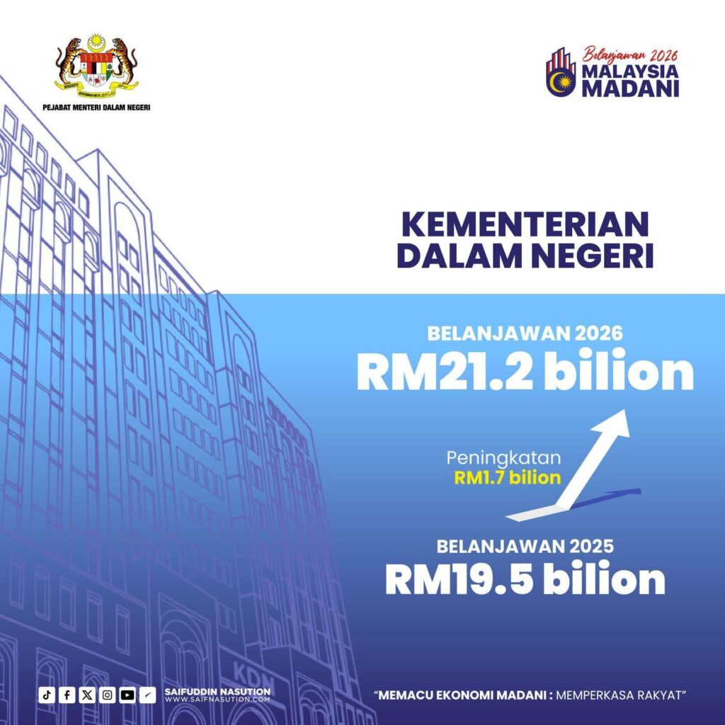 According to him, the allocation will be used to strengthen security assets, upgrade facilities for uniformed forces under KDN, enhance border control, and bolster the country’s capacity to address cyber threats and digital crimes.