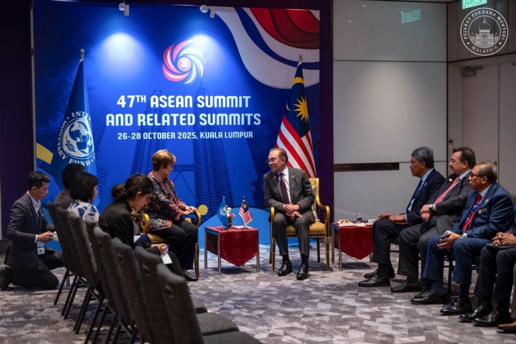 KUALA LUMPUR, MALAYSIA Oct 28, 2025 – Malaysian Prime Minister Dato’ Seri Anwar Ibrahim held a courtesy meeting with International Monetary Fund (IMF) Managing Director Kristalina Georgieva on the sidelines of the 47th ASEAN Summit here Tuesday, reinforcing bilateral ties amid global economic challenges.