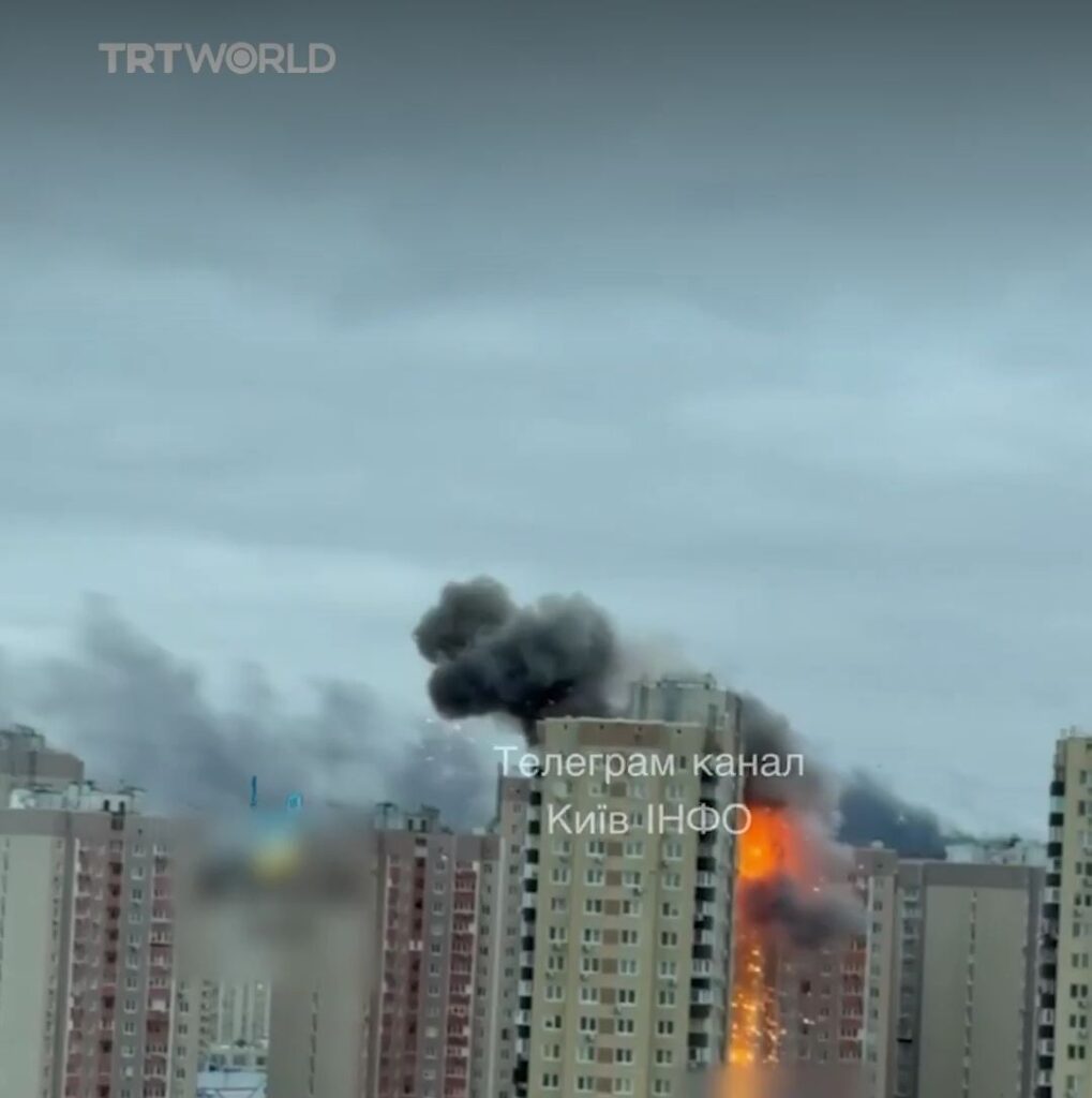Dramatic footage circulating on social media showed a bright explosion and fireball engulfing the upper floors of a high-rise apartment building in the city, illuminating the snowy urban landscape under cloudy skies. Emergency services rushed to multiple sites, evacuating residents and extinguishing blazes in structures including an 18-story tower in the Dnipro district and a 24-story building in Darnytsia.