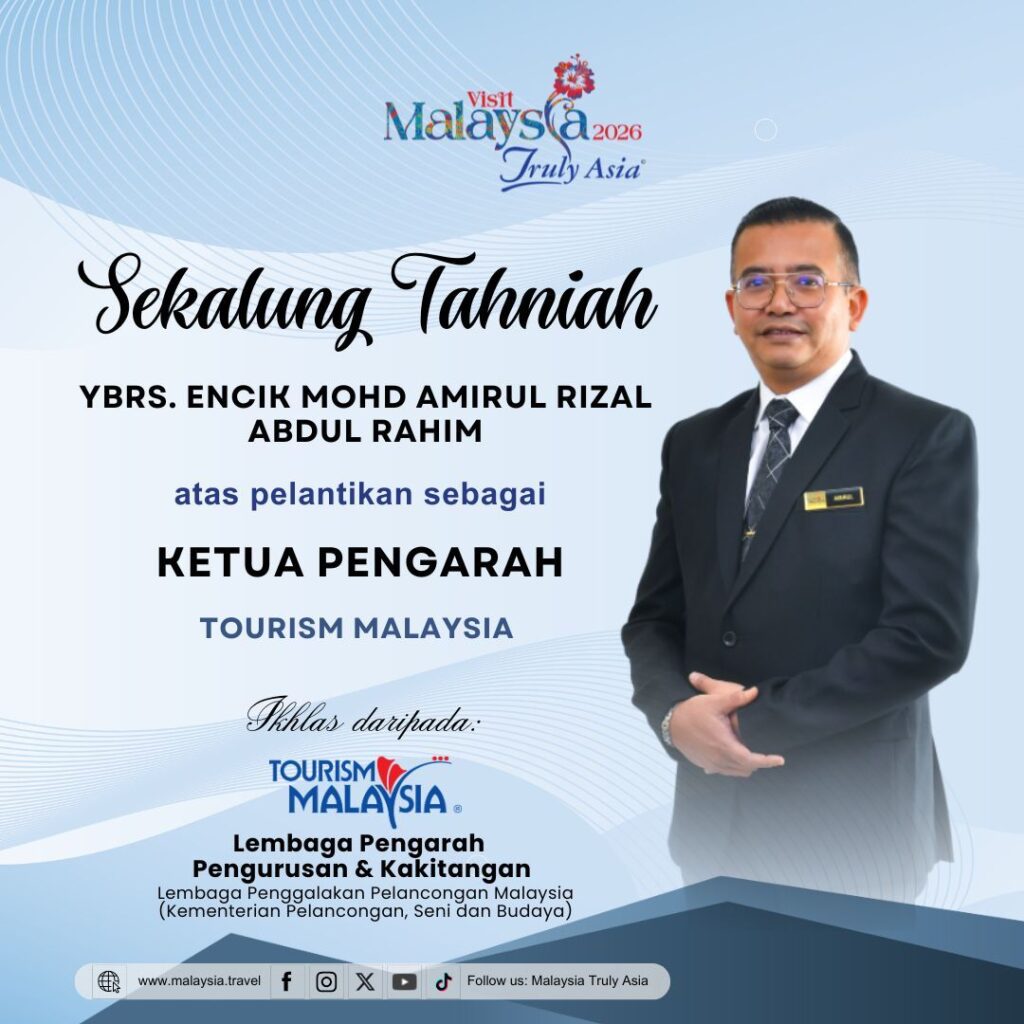 The appointment is viewed as a strategic move by the government to ensure continuity of experienced leadership at the country’s primary tourism promotion agency as Malaysia prepares to welcome the Visit Malaysia 2026 campaign year.