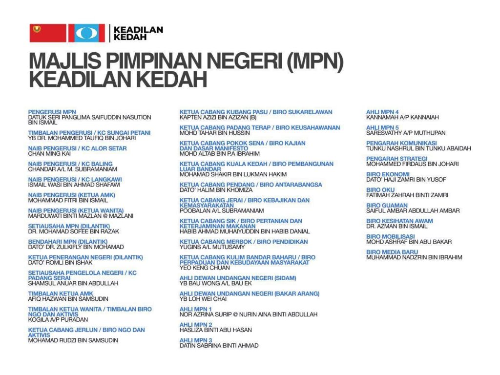 In a media statement issued today, MPN KEADILAN Kedah emphasised organisational restructuring through a blend of experienced and new progressive leadership to bolster the party’s strength and expand grassroots support across the state.