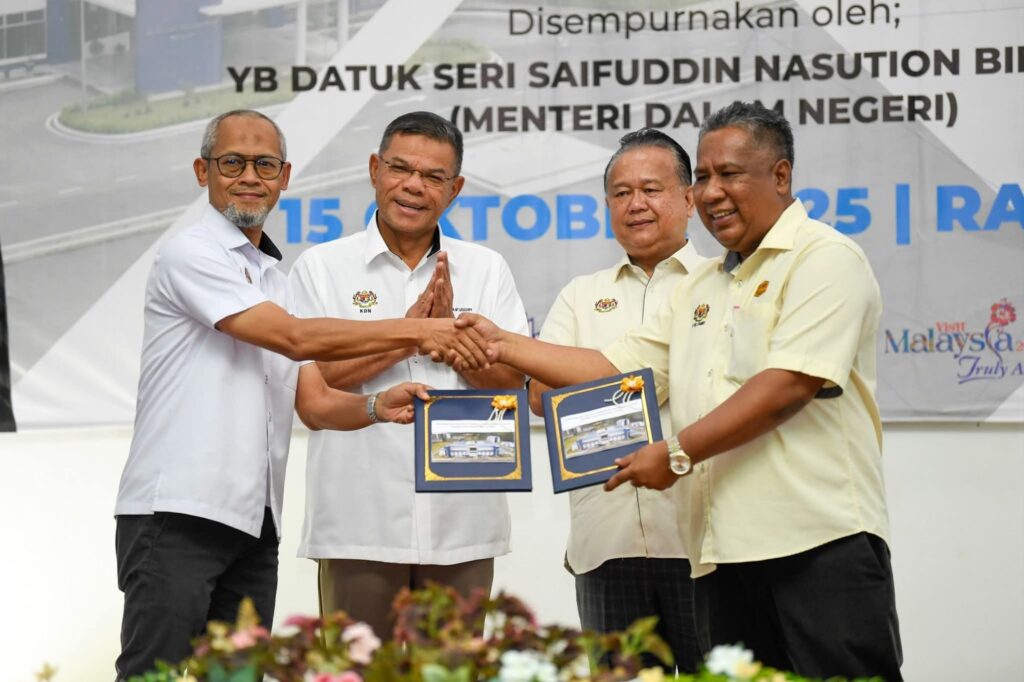 MUALLIM, PERAK, MALAYSIA Oct 15, 2025– Home Minister Datuk Seri Saifuddin Nasution Ismail and Works Minister Dato’ Sri Alexander Nanta Linggi officiated the handover ceremony for the Muallim District Police Headquarters (IPD) construction project today, marking another key achievement by the MADANI Government in bolstering the nation’s security infrastructure.