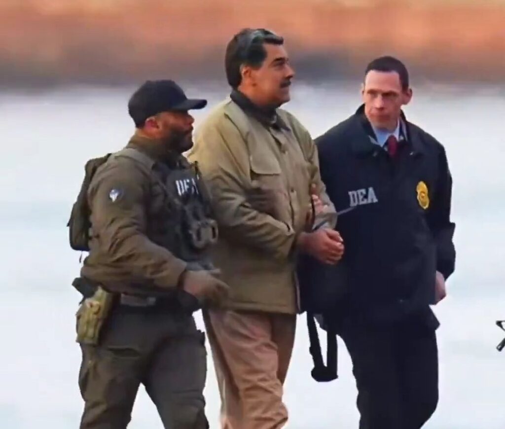 Video footage circulating widely on social media, including a post from BRICS News showing the couple’s arrival, captured Maduro—dressed in his signature olive-green jacket—being escorted by heavily armed U.S. Drug Enforcement Administration (DEA) agents and special forces from a helicopter. The scenes depict Maduro walking calmly but under tight security on what appears to be a helipad, surrounded by agents in tactical gear.