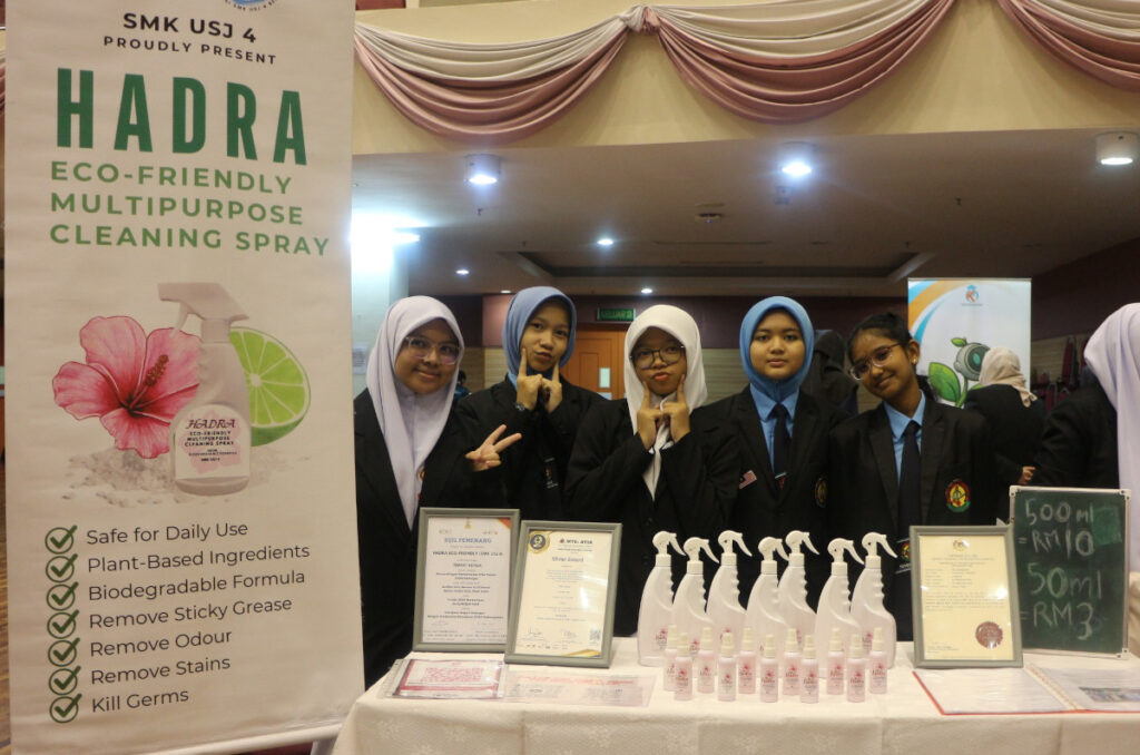 During the programme, all 32 teams showcased their innovative prototypes to distinguished guests, including representatives from Universiti Malaya, IPGM Kuala Lumpur, Universiti Teknologi MARA, Sunway University, UCSI University, PETRONAS, the Malaysian Rubber Board, Karisma Mutiara, and other partner organisations. The showcase provided students with the opportunity to present their ideas, explain their creative processes, and receive feedback from experts and industry practitioners. Judges with diverse expertise and backgrounds were invited to evaluate the students’ ideas and provide feedback. Visitors, lecturers, and teachers showed their support by purchasing the students’ products and praising their hard work.