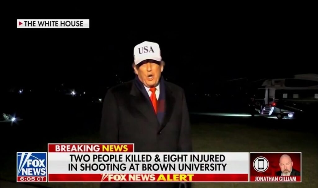 “I’ve been fully briefed on the Brown University situation — what a terrible thing it is,” Trump said. “All we can do right now is pray for the victims and for those that were very badly hurt… Just pray.”