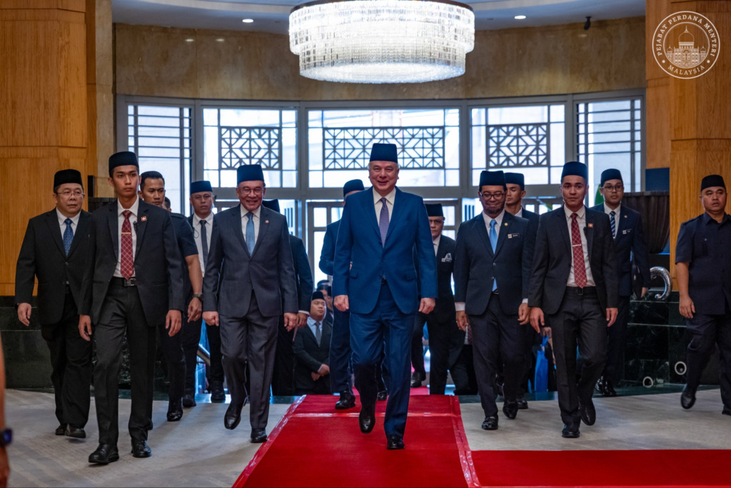 Photos shared by the Prime Minister’s Office depicted Anwar and other dignitaries, dressed in formal attire including songkok, walking along a red carpet in an elegant venue, symbolizing the event’s ceremonial importance.