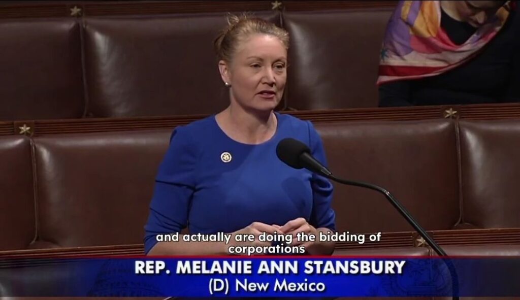 “I wasn’t planning on speaking on this bill this morning,” Stansbury began, “but I have to say that I cannot stand when politicians come into the chambers of these hallowed halls… pretending to represent the hard-working poor and working families of this country and actually are doing the bidding of corporations.”