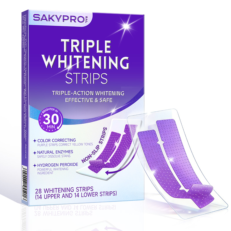 Teeth whitening strips often involve a trade-off: people want faster whitening but worry about tooth sensitivity and wear comfort. Sakyproral TRIPLE Whitening Strips are purple teeth whitening strips designed to balance speed and comfort with an innovative triple-action whitening system—delivering visible results in 30 minutes and up to four shades whiter in seven days.