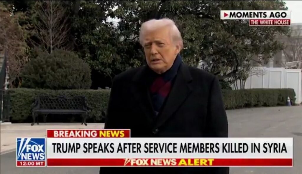 Speaking to reporters outside the White House before departing for the Army-Navy football game, Trump mourned the victims as “three great patriots” and expressed prayers for their families. “We mourn the loss of three great patriots in Syria… we pray for them, and their parents, and their loved ones… We will retaliate,” he stated.