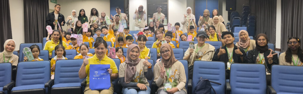 On 17 October 2025, the lush greenery of Rimba Ilmu urban garden of Universiti Malaya came alive with laughter and curiosity as twenty-seven children aged between four and six from Little Footprint Kindergarten, Ara Damansara, accompanied by five teachers, including the kindergarten’s headmaster, participated in “Wildlife on Wheels”, an interactive educational programme organised by students from the Faculty of Science under the University Malaya Ecology Biodiversity Society (EcoBio UM) in collaboration with Rimba Ilmu’s management.